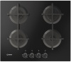 Piano cottura a gas - larg. 59.5 cm. - 4 fuochi - accensione elettrica fuochi - piano vetro temperato - griglie in ghisa - comandi frontali - colore nero