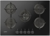 Piano cottura a gas - larg. 75.2 cm. - 5 fuochi - accensione elettrica fuochi - piano vetro temperato - griglie in ghisa - comandi frontali - colore nero