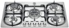 Piano cottura a gas - larg. 75.2 cm. - 5 fuochi - accensione elettrica fuochi - piano acciaio inox - griglie in ghisa - comandi frontali - colore acciaio inox