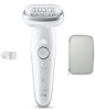 Epilatore ricaricabile - autonomia 50 minuti - utilizzo corpo wet & dry - 2 velocità - Testina massagiante - luce standard - acc. spazzola esfoliazione / testina radente e rifinitore - colore bianco